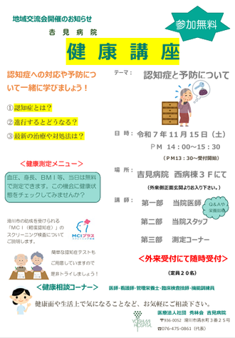 医療法人社団秀林会 吉見病院 電話:076-475-0861(代表)